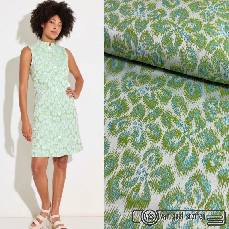 Exclusieve jacquard bloemen groen A La Ville / knipmode februari