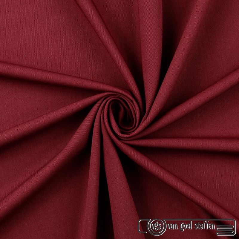 Stretch gabardine wol/polyester/viscose bordeaux rood