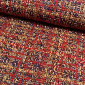 Grof geweven mantelpak stof / boucle bordeaux rood met lurex draad.