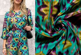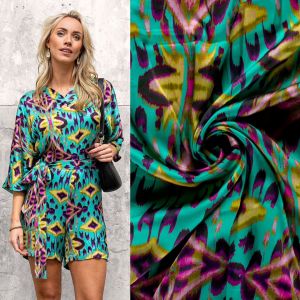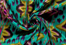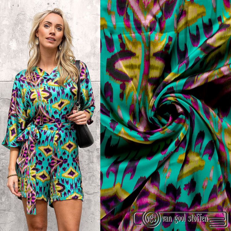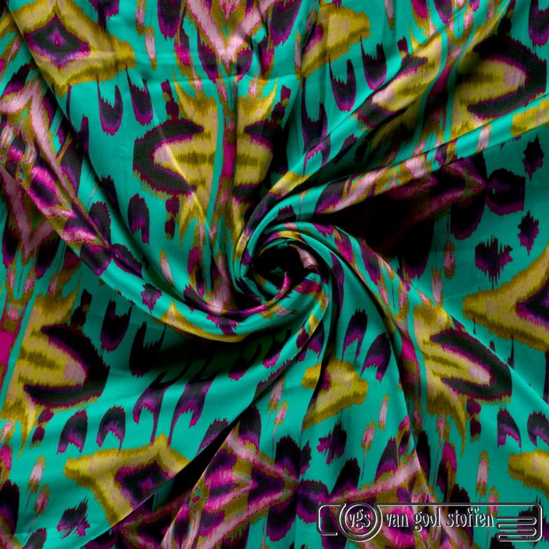 Exclusieve viscose crepe blauw white off barok print exclusieve designerstof (deadstock)