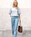 Deze lichtblauwe voorgewassen denim stof maakt deel uit van onze