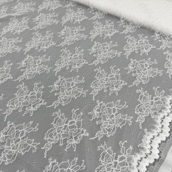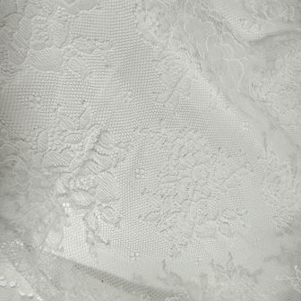 Französische Spitze mit Wimpernkante und Spiegelkante, dadurch ist die Spitze auf beiden Seiten gleich verarbeitet. Französische Spitze wird in 3-Meter-Stücken hergestellt. Wenn Sie mehr als 3 Meter wünschen, erhalten Sie diese immer in zwei Teilen.