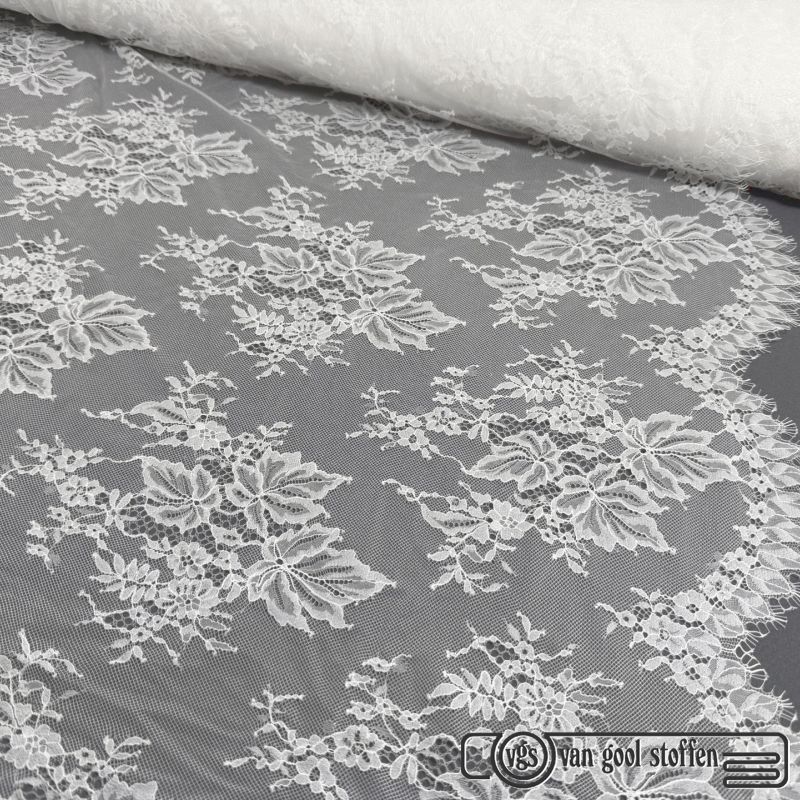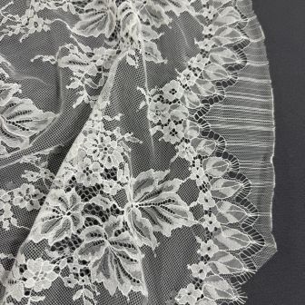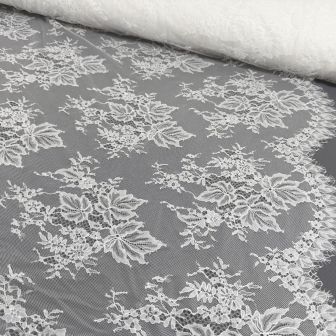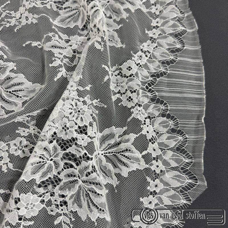 Französische Spitze mit Wimpernkante und Spiegelkante, dadurch ist die Spitze auf beiden Seiten gleich verarbeitet. Französische Spitze wird in 3-Meter-Stücken hergestellt. Wenn Sie mehr als 3 Meter wünschen, erhalten Sie diese immer in zwei Teilen.