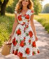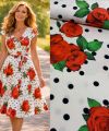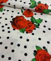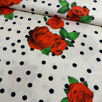 Linnen viscose polka dots met rozen exclusieve designer stof