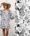 De stof bestaat uit 50% katoen en 50% polyester, wat zorgt voor een prettige combinatie van comfort, ademend vermogen en duurzaamheid. Met een gewicht van 220 gram per m² en een breedte van 135 cm is deze stof zeer geschikt voor zowel kleding als accessoires.