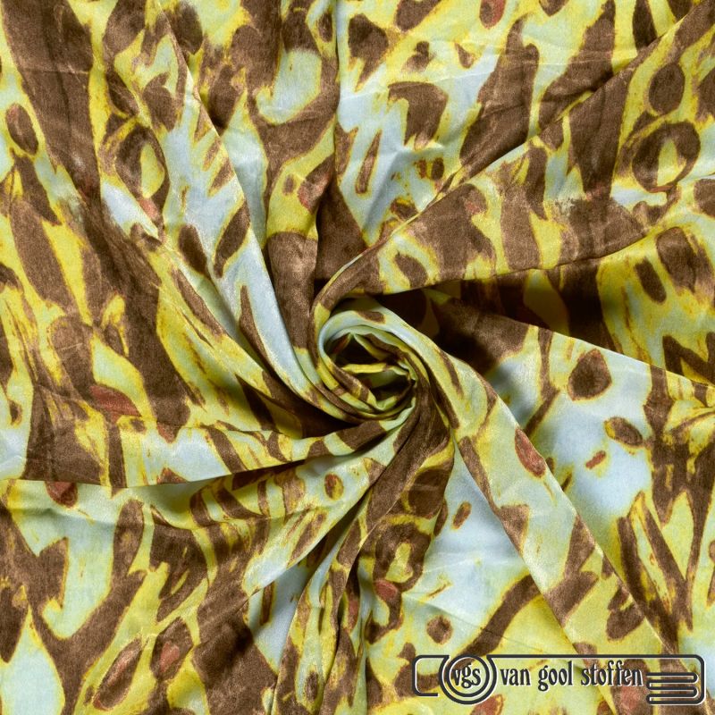 Stretch zijde katoen satijn abstract print groen Exclusief uit Italië digitaal geprint