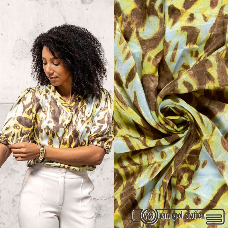 Stretch zijde katoen satijn panter print Exclusief uit Italië digitaal geprint