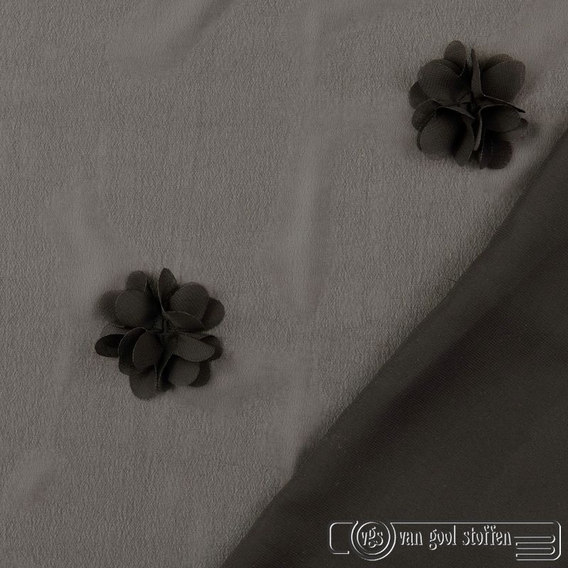 Voile met 3D bloemen zwart
