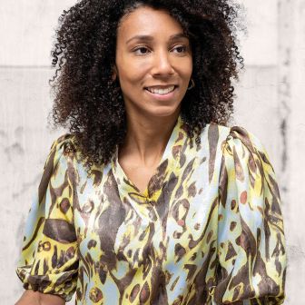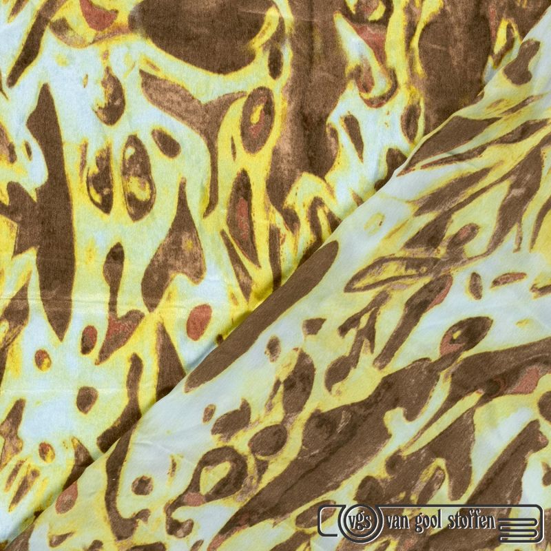 Satin velvet bedrukt botergeel bruin # my image