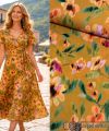 Voile / chiffon is a thin, slightly translucent and supple fabric. This fabric has a width of 150cm and a weight of 115g/m2. Exclusive voile with border pattern Italian designer fabric. This fabric has a border pattern with a lime bar on one side of the fabric, continuing to a large paisley print azure blue, so you should process this fabric the other way around! Width becomes the length of the dress or skirt. Application Can be used for clothing, skirts, dresses, blouse.