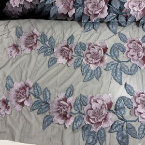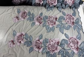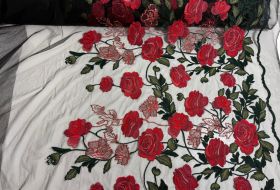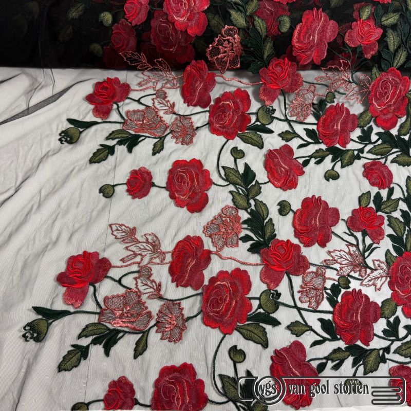 Exclusieve tule met geborduurde border rand rozen designerstof