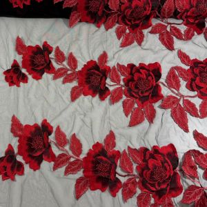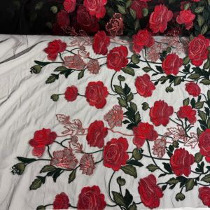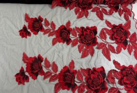 Exclusieve tule met geborduurde border rand rozen designerstof (30cm roos)