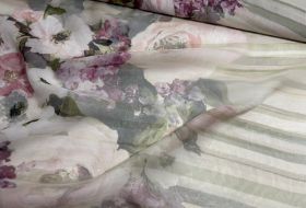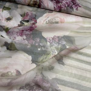 Zijde chiffon bloemen print met streep Italiaanse designer stof poeder tinten