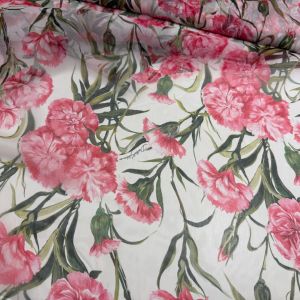 Exclusieve stretch zijde Italiaans designer bloemen print poeder rose