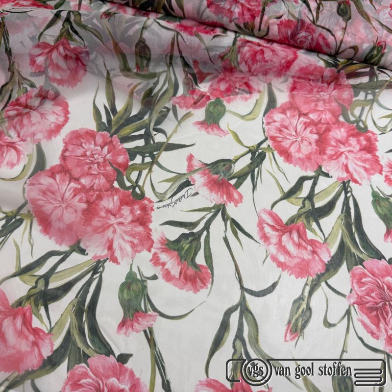 Zijde chiffon bloemen & DG Italiaanse designer stof (deadstock)