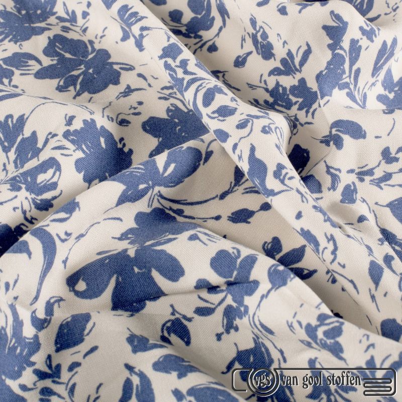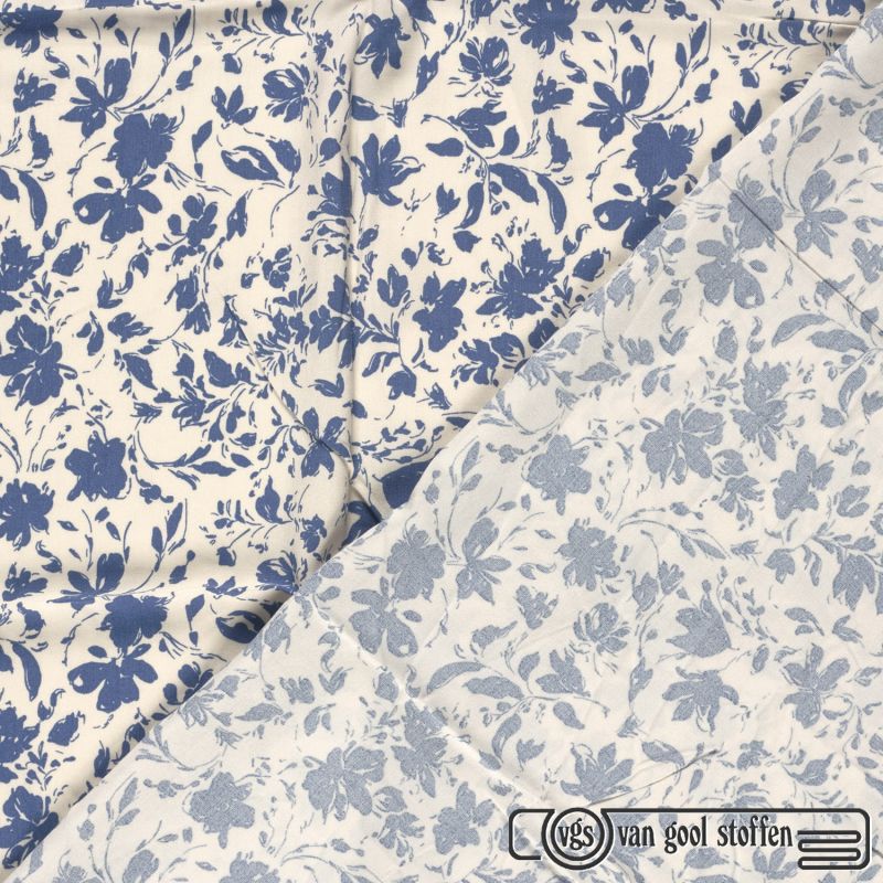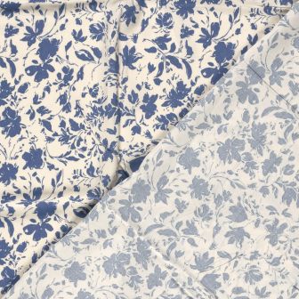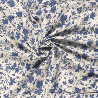 Bamboe poplin bloementjes jeans blauw