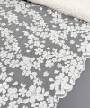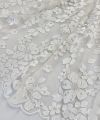 De zachte ivory tint geeft de stof een romantische en tijdloze uitstraling. Dankzij de hoogwaardige samenstelling valt de kant soepel, terwijl zij tegelijkertijd structuur en luxe behoudt – perfect voor exclusieve bruidscreaties en couture toepassingen.
