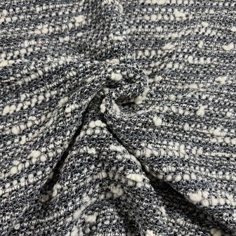 Exclusieve grof geweven mantelpak stof / boucle gemeleerd ivory,zwart en goud,zilver lurex