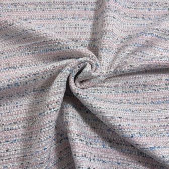 Exclusieve grof geweven mantelpak stof licht rose blauw en goud lurex