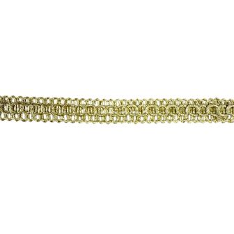 Dit bandje is gemaakt van polyester, polyamide, lurex . 1 cm breed. Te gebruiken voor versiering van kleding , decoratie ect.