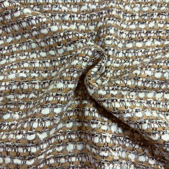 Grof geweven mantelpak stof / boucle ivory met camel en goud lurex