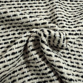 Grof geweven mantelpak stof / boucle ivory met zwart en goud lurex ruit