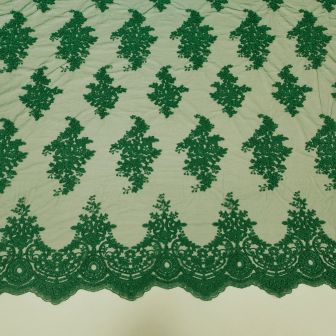 Encaje de novia con cordoncillo de perlas y abalorios de color marfil Este encaje tiene un borde festoneado terminado que es el mismo en ambos lados. Este lado tiene 1,32 m de ancho. Si quieres poder valorar correctamente el tejido, puedes pedir una muestra de 10 cm.