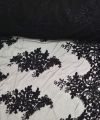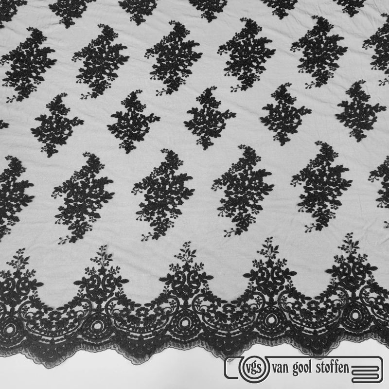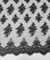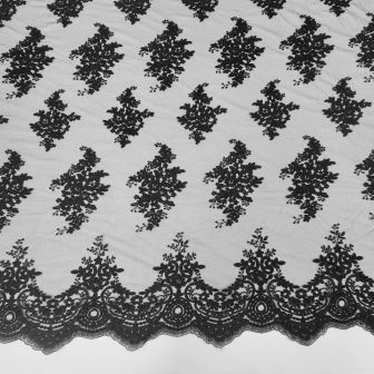 Encaje de novia con cordoncillo de perlas y abalorios de color marfil Este encaje tiene un borde festoneado terminado que es el mismo en ambos lados. Este lado tiene 1,32 m de ancho. Si quieres poder valorar correctamente el tejido, puedes pedir una muestra de 10 cm.
