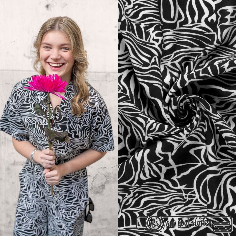 De stof bestaat uit 50% katoen en 50% polyester, wat zorgt voor een prettige combinatie van comfort, ademend vermogen en duurzaamheid. Met een gewicht van 220 gram per m² en een breedte van 135 cm is deze stof zeer geschikt voor zowel kleding als accessoires.