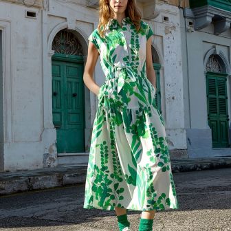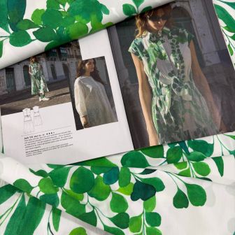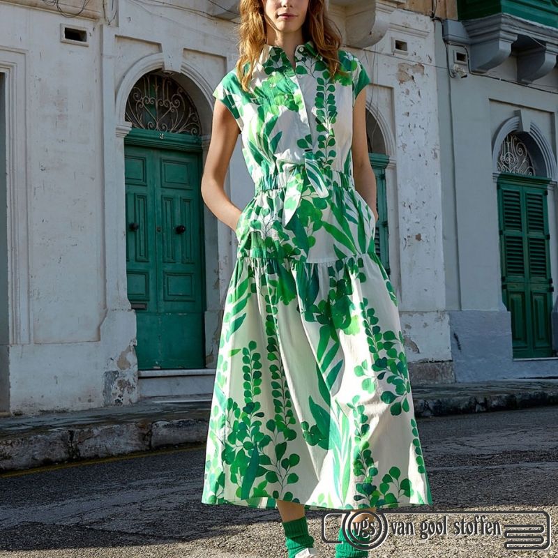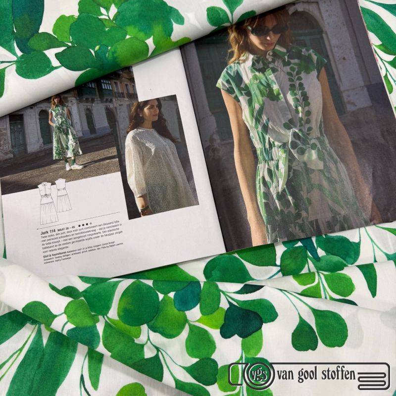 Poplin digitaal printed leaves wit groen a la ville / burda
