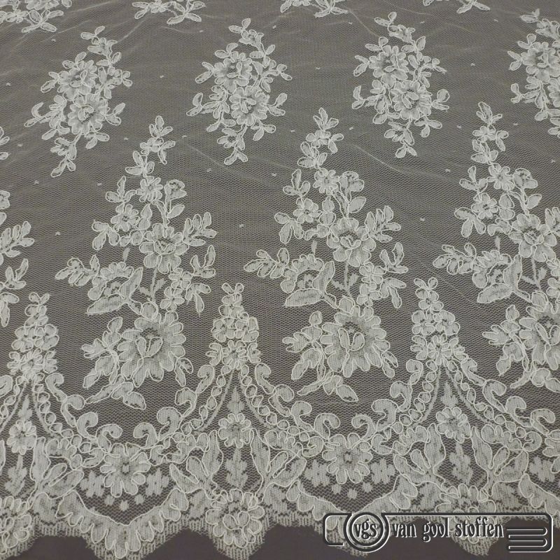 Bruidskant met kraaltjes en pareltjes ivory kleur 111