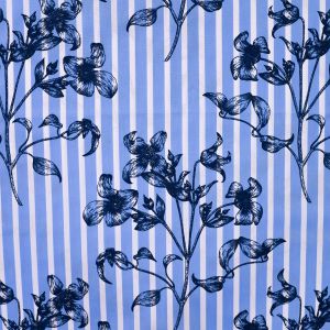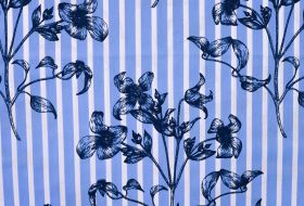 Katoen stretch streep blauw wit met bloemen