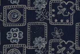 Denim stof met geborduurde bladeren kleur 003 My Image collectie