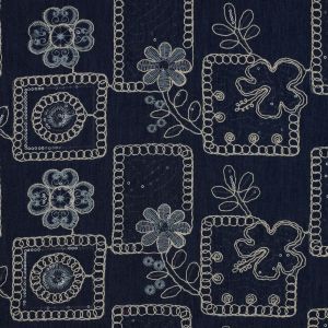 Denim stof met geborduurde bladeren kleur 006 My Image collectie