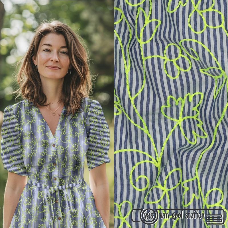Katoen Streep Blauw-Wit met Neon Borduring