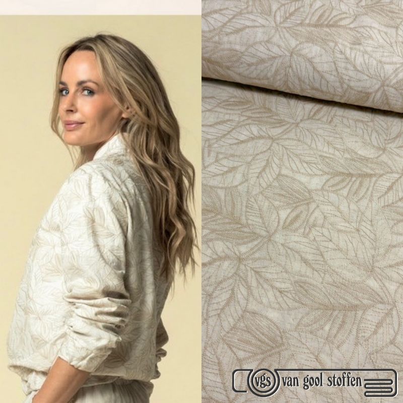 Exclusieve borduursel bloemen print /broderie zand kleur