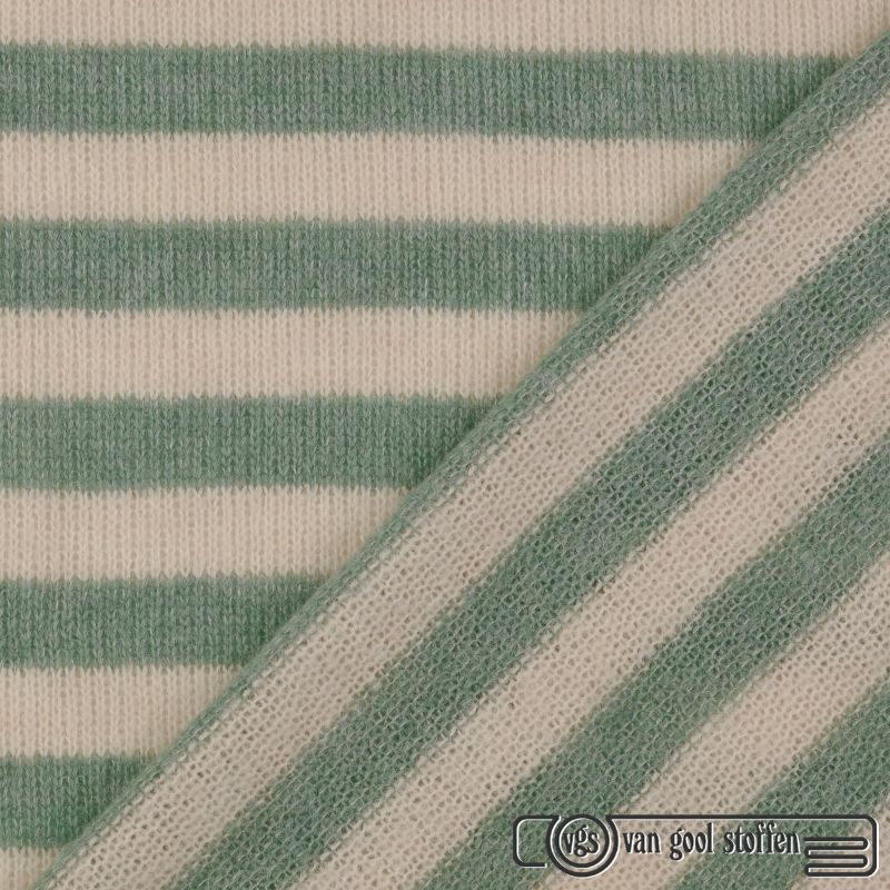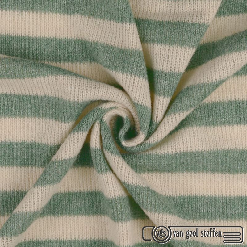 Deze gebreide stof met streepmotief in een stijlvolle olijfkleur is een echte eyecatcher binnen onze strick collectie. De stof is garen geverfd, wat zorgt voor een diepe en duurzame kleurintensiteit. Dankzij de zachte en soepele structuur biedt deze stof optimaal draagcomfort en een moderne uitstraling.