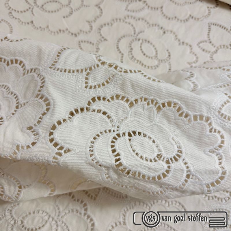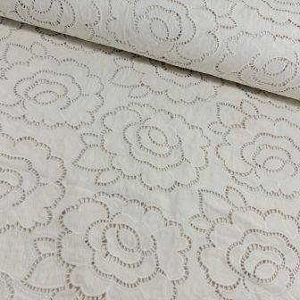Jeans stof met bloemenborduursel ecru