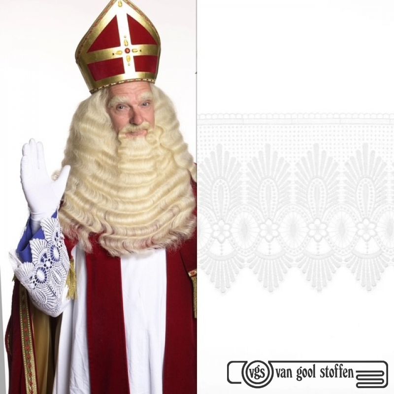 Kanten rand met parels en bloem pailletten 2cm ivory