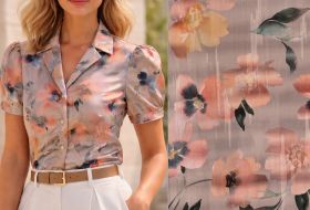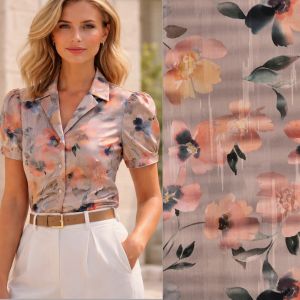 katoen satijn met bloemen print taupe zalm