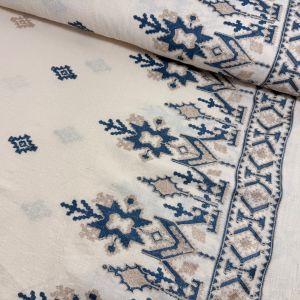 Katoen broderie stof met Bloemen borduring en pailletten ecru creme