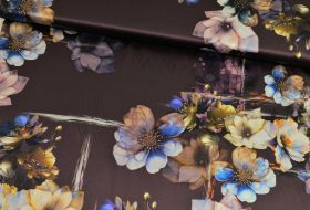 Zware jersey jacquard print bloemen exclusieve designer stof donker bruin