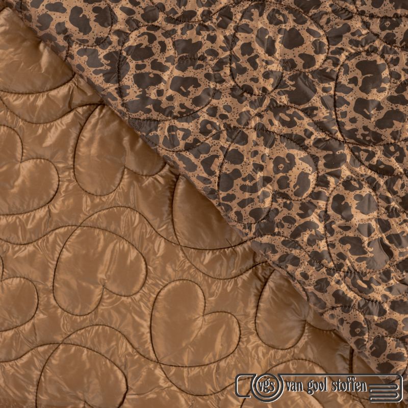 Doorgestikte 3 laags panter print bruin in hartjes motief