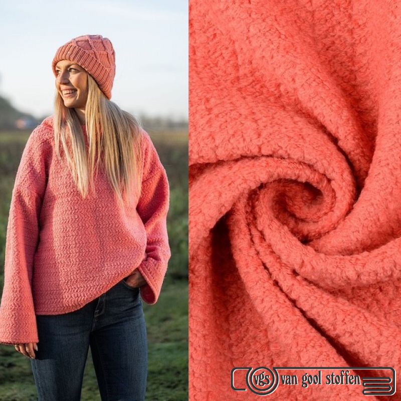 Exclusieve grof geweven mantelpak stof italiaans design beige ivory bordeaux