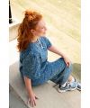 Dankzij de royale breedte van 155 cm is deze stof uitermate geschikt voor het maken van blouses en rokken, zoals toegepast in de Poppy Meets Pomme collectie.