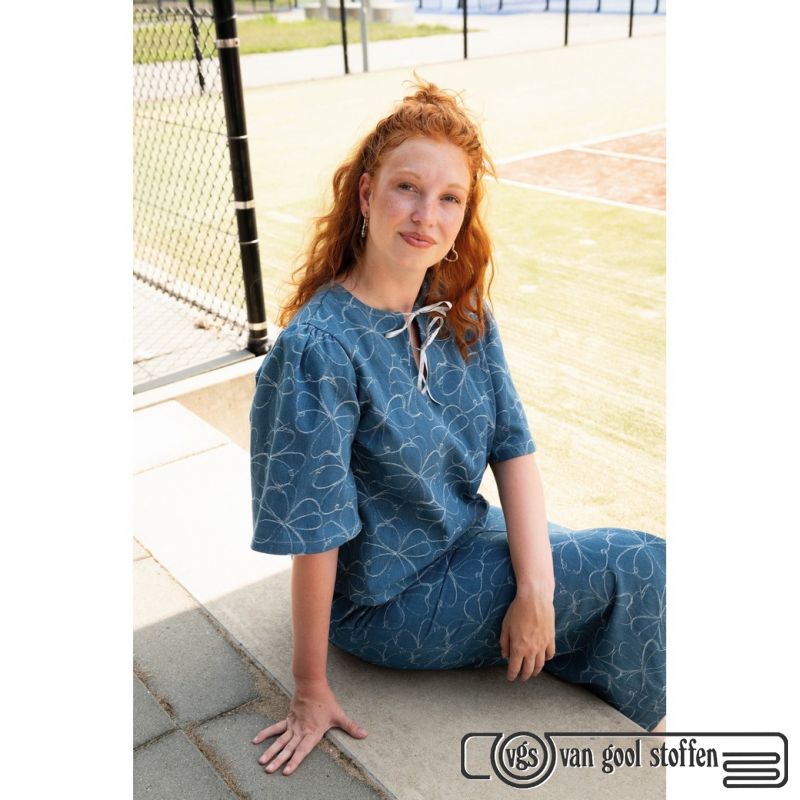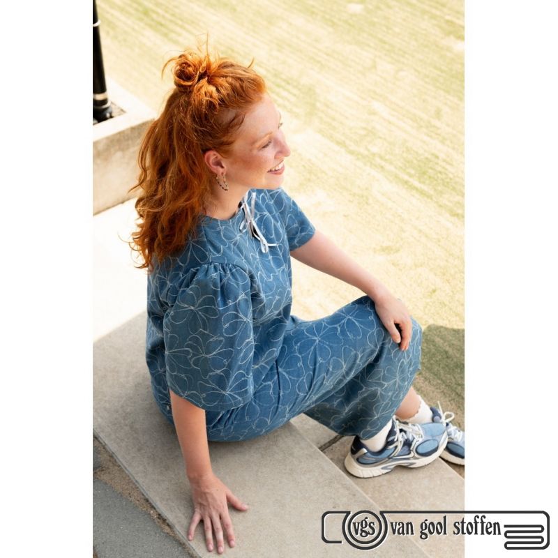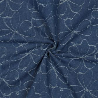 Deze hoogwaardige denim jacquard stof met bloemenmotief is onderdeel van de exclusieve Poppy Meets Pomme – Editie 26. De ingeweven jacquardstructuur geeft de stof een rijke uitstraling en extra diepte.