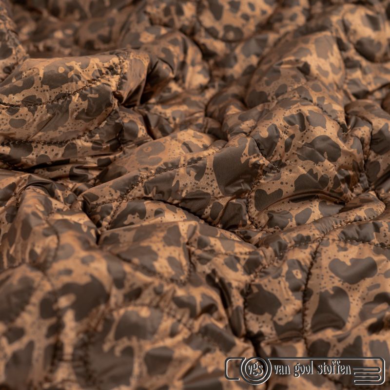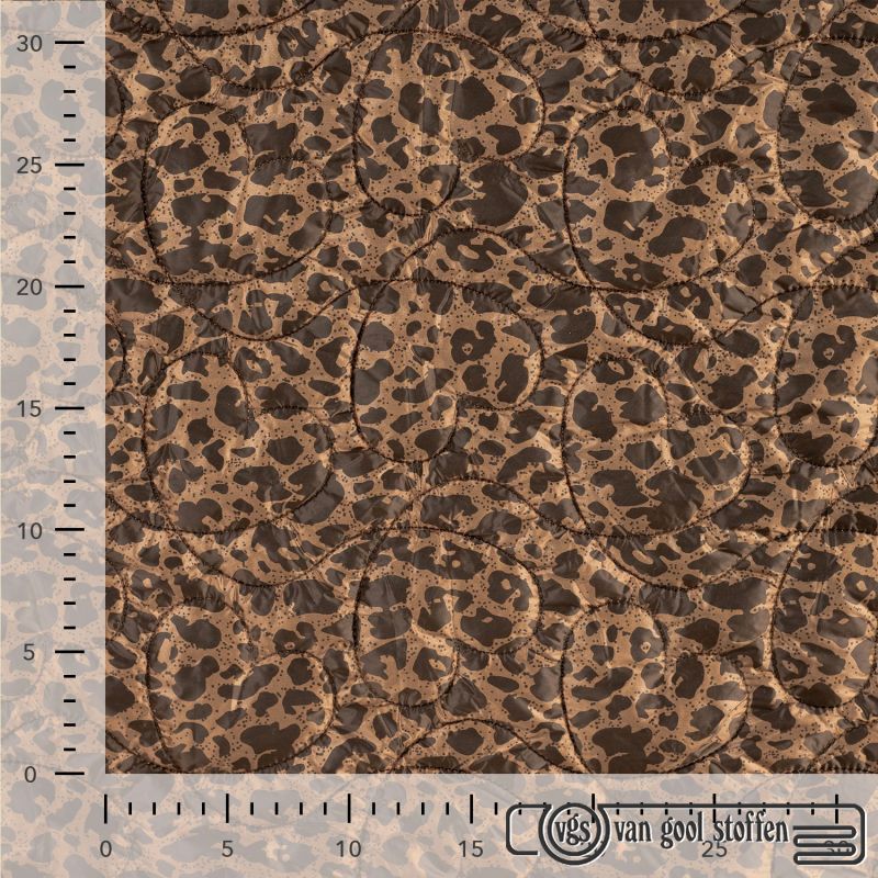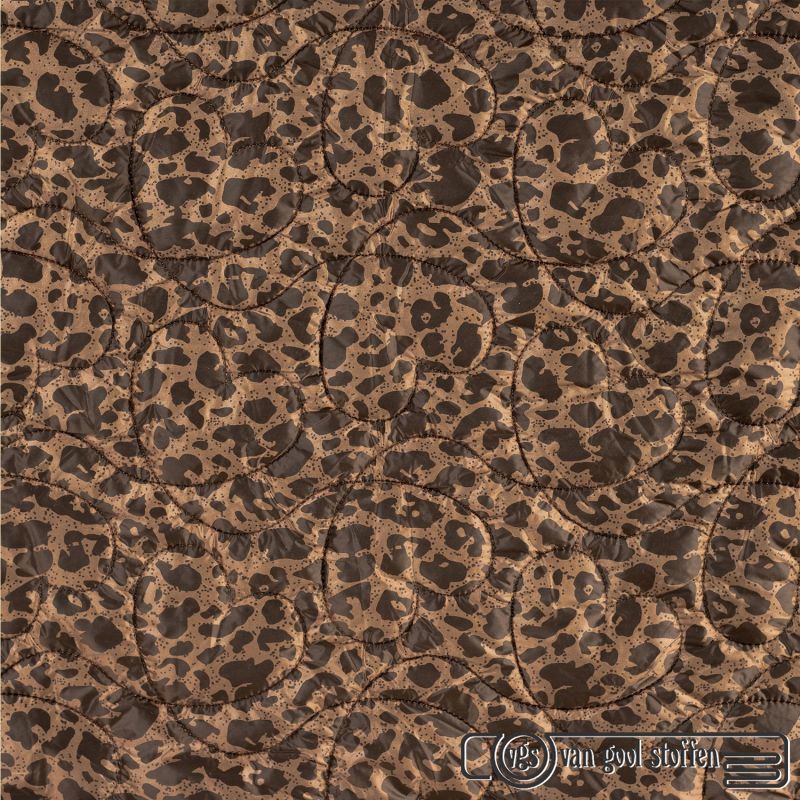 Deze exclusieve doorgestikte 3-laagse stof combineert een stoere leopard print met een warme en lichte kwaliteit. De stof bestaat uit een buitenkant, voering en tussenvoering, waardoor hij direct klaar is voor verwerking in mode en accessoires.