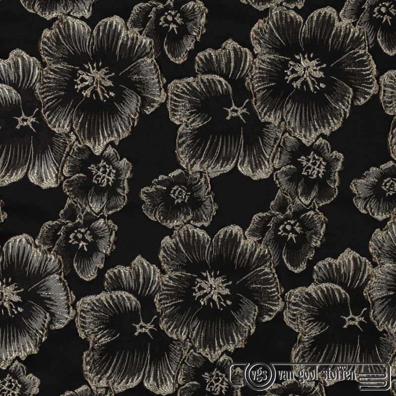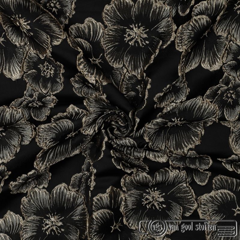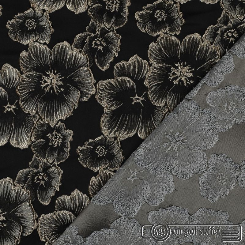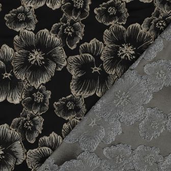 Jacquard Flowers – ondergrond zwart met beige bloemen