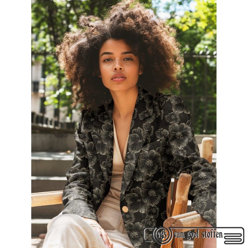 Deze prachtige jacquard geweven stof is voorzien van een bloemenmotief. De stof heeft een elegante uitstraling en een mooie structuur, perfect voor stijlvolle kleding en decoratieve toepassingen.