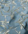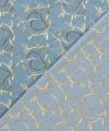 Denim stof met geborduurde bladeren – Indigo (My Image collectie)